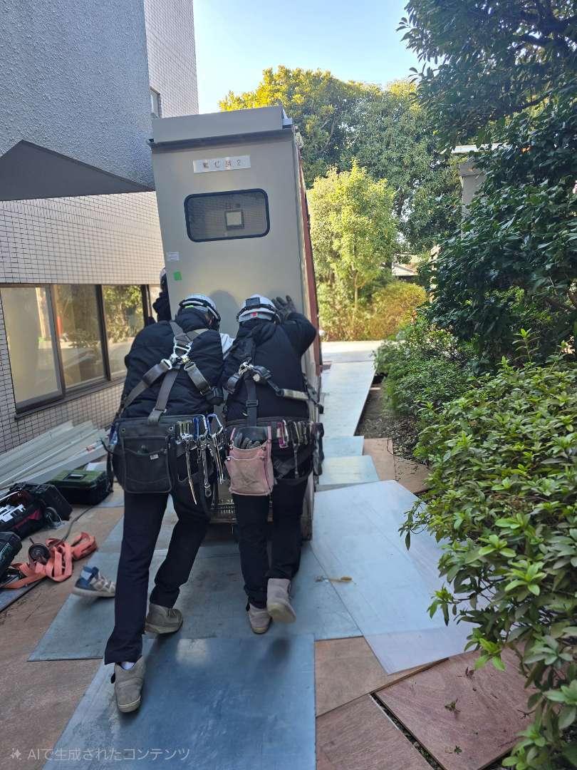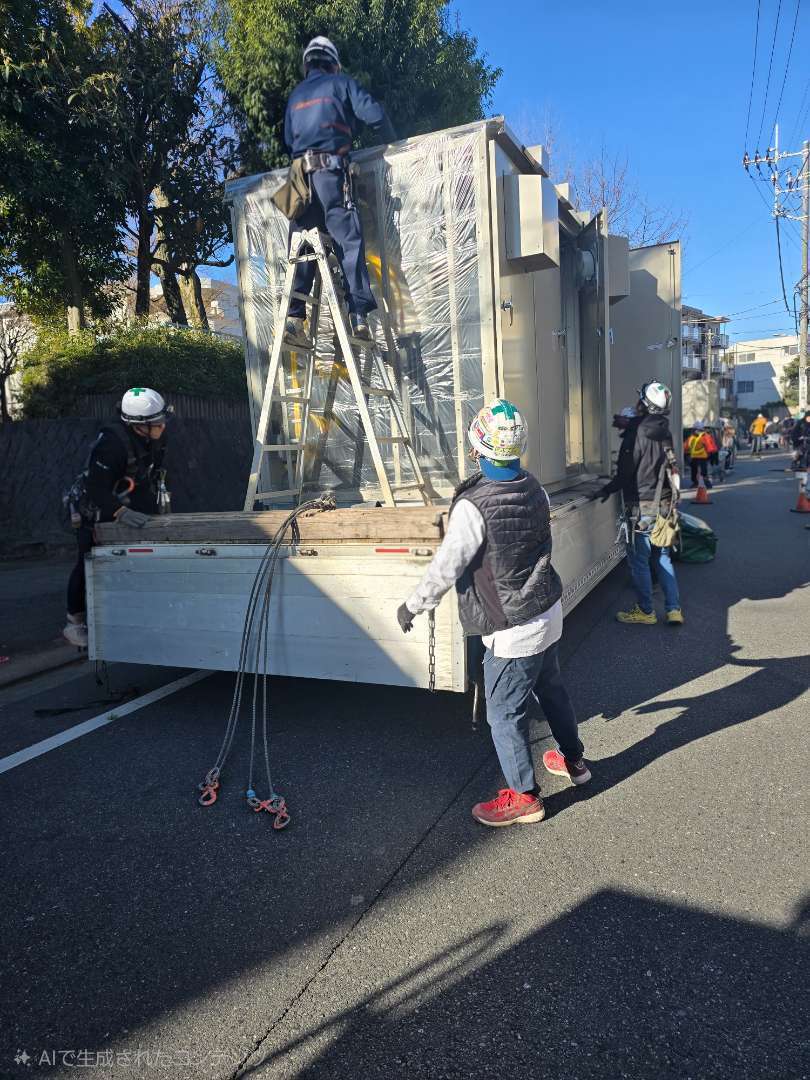 都内にて地下に冷温水発生機を搬入据付しました。
